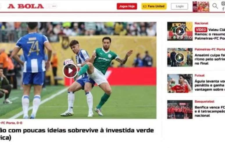 O empate sem gols entre Palmeiras e Porto, neste domingo (15/6), pela primeira rodada do Super Mundial de Clubes, dividiram opiniões. Afinal, enquanto no Brasil obteve-se a sensação de que o Verdão poderia sair do gramado com a vitória, a imprensa portuguesa detonou a atuação dos "Dragões".