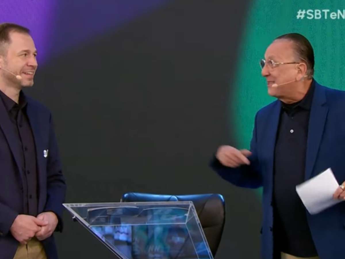 Galvão estreia no SBT sem usar paletó com logo da emissora enquanto tem contrato com a Band