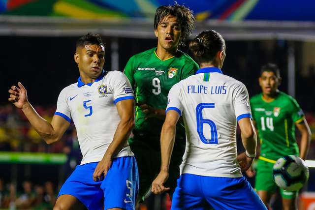 Oportunidade perdida Casemiro (Brasil), finalização com o pé direito de fora da área.