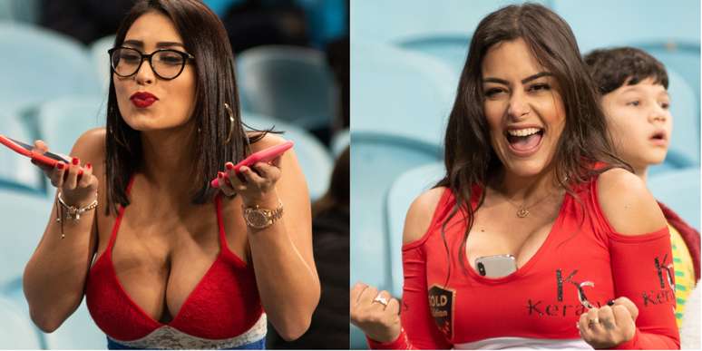 Larissa Riquelme e modelos travam duelo em Brasil x Paraguai
