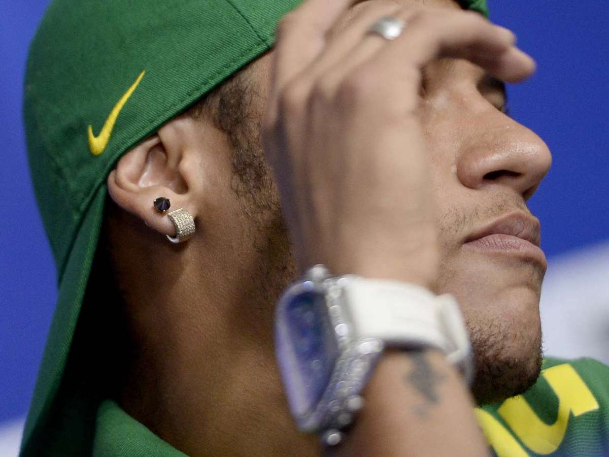 Grande destaque da Seleção Brasileira na Copa das Confederações, Neymar não chama atenção apenas dentro de campo. O jogador do Barcelona faz sucesso com acessórios como brincos personalizados, relógios com bandeira do Brasil, entre outros