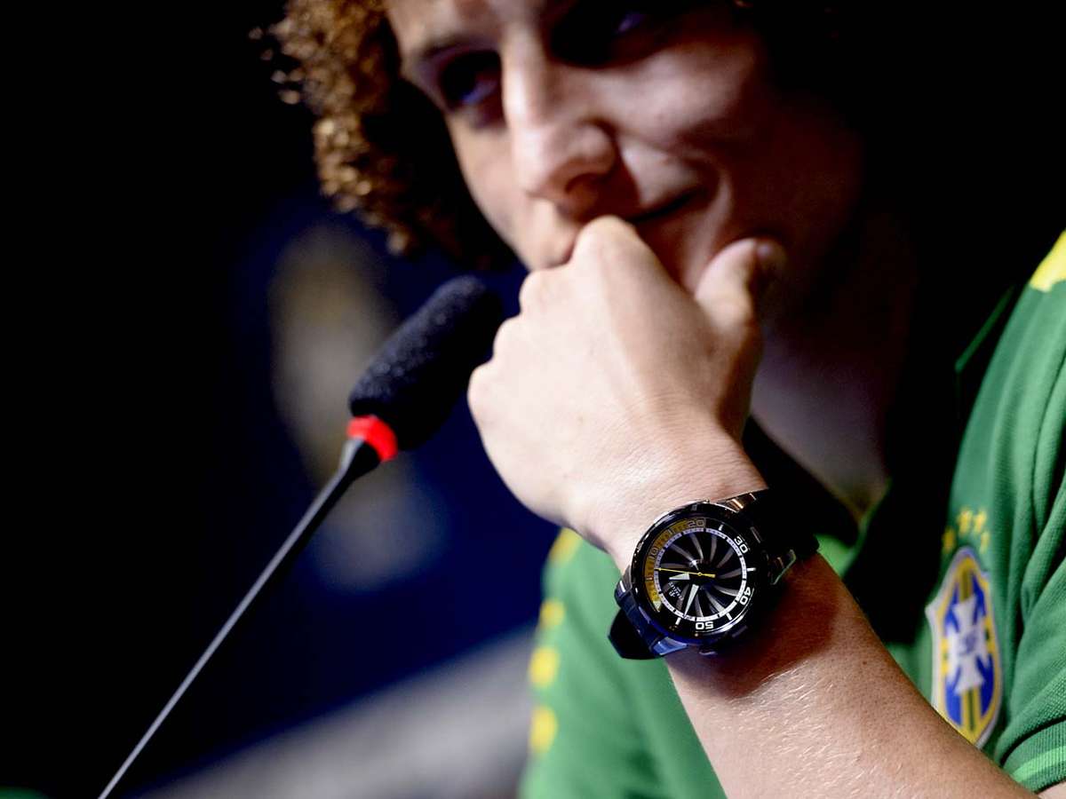 Além de tatuagens, cortes de cabelos inusitados e dancinhas na hora de comemorar um gol, os jogadores da Seleção Brasileira também se destacam pela escolha dos acessórios; veja alguns deles. Na foto, David Luiz mostra que é fã de relógios de pulso