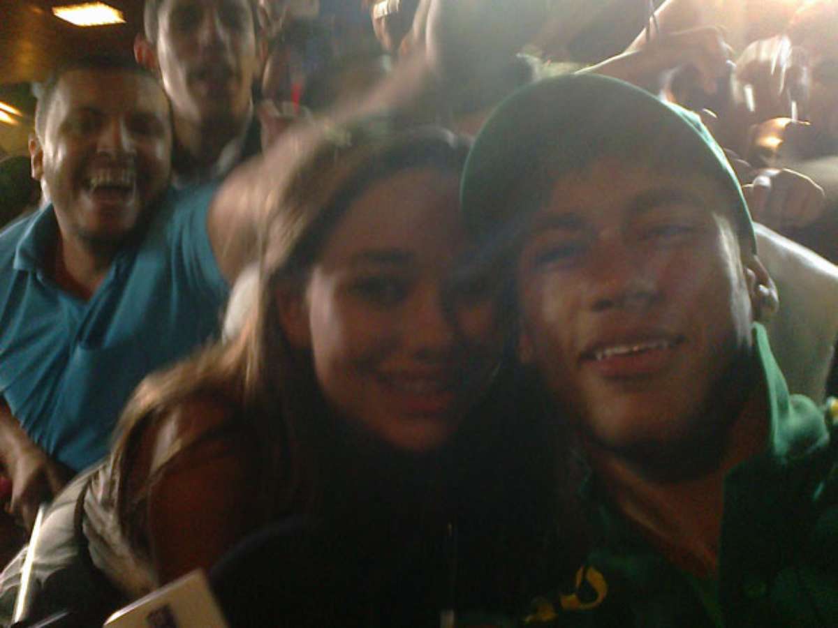 O jogador não apenas tirou fotos e deu autógrafos para os fãs que se aglomeravam nas grades que separam o ônibus da Seleção dos torcedores. Neymar "bancou" uma de fotógrafo. O atacante pegou o celular da jovem Katleen Lorrainy, 14 anos, e tirou uma foto dele com ela. "Nem acreditei quando ele estava vindo. Não acredito até agora. Ele veio em minha direção, pegou meu celular e tirou a foto. Estou tremendo ainda".