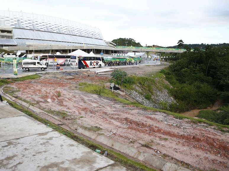 A Arena Pernambuco, no Recife, totalmente nova e inaugurada em 22 de maio, é um estádio que custou R$ 529,5 milhões. O local, no entanto, ainda apresenta vários problemas na estrutura. Entre eles, está a segurança no lado externo: a Arena fica ao lado de uma ribanceira