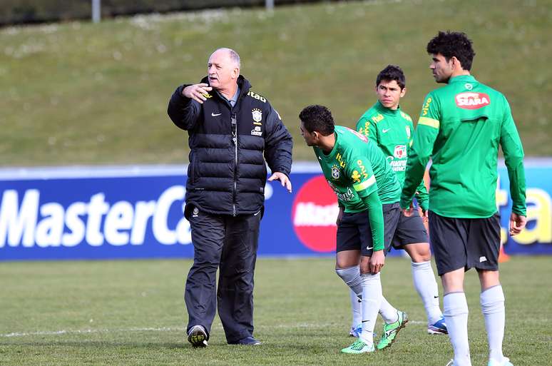 Pela primeira vez com uma semana completa de treinos, Felipão não perdeu tempo. Fez uma série de modificações ao longo da atividade, a começar pelas entradas de Hernanes no lugar de Luiz Gustavo e de Diego Costa na posição de Hulk.