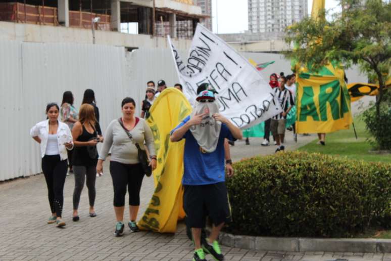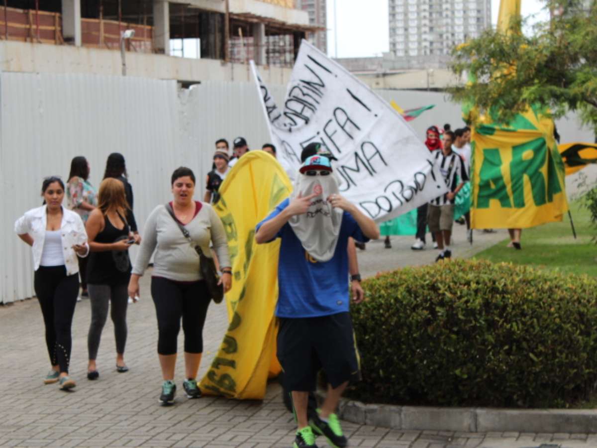 João Hermínio Marques, líder da Frente Nacional de Torcedores, disse que o grupo irá manter as manifestações até que a presidente Dilma derrube o "ditador e torturador". "Estamos num prédio superfaturado. Ele não é o dono do futebol. O futebol é do povo", disse o manifestante