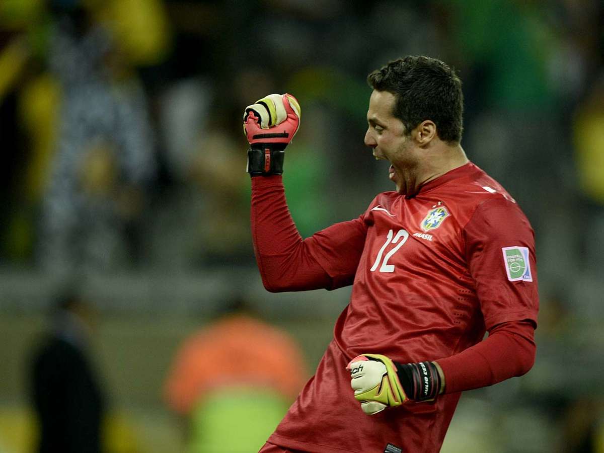 Escolhido o melhor em campo, Júlio César vibra com o gol de Paulinho