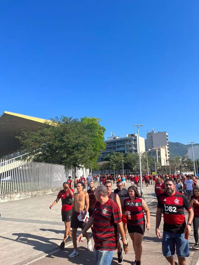 HUGO BARBOSA: Polícia reforçada nos arredores do estádio. Em conversa com a reportagem, o representante do GEPE informou que é para prevenir situações em caso de derrota do Flamengo.