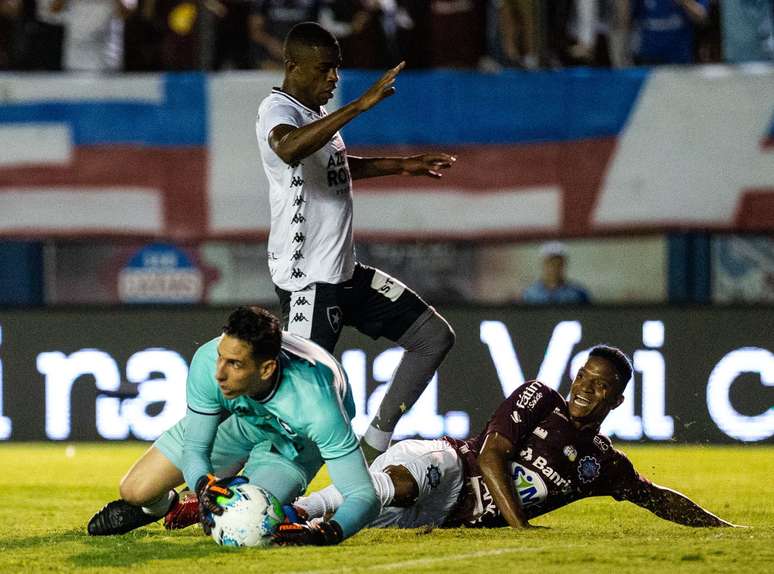 Precisando da vitória para avançar na competição, o Caxias assumiu o comando das ações desde o apito inicial. Com a marcação alta e sufocando o Alvinegro em seu campo, os gaúchos criaram mais e estiveram mais perto de marcar do que o Botafogo.