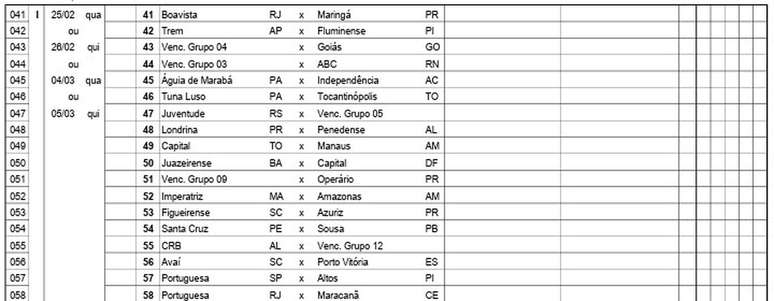 Todos os 14 jogos da rodada inicial surgem no site oficial da entidade; jogo que abrirá o torneio será entre Sampaio Corrêa-RJ x Desportiva-ES