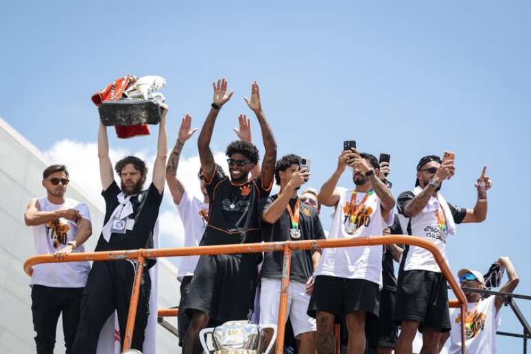 Durante a celebração, não faltaram provocações aos rivais. Em cima do trio elétrico, o atacante Romero pegou o microfone e tirou sarro do Palmeiras.