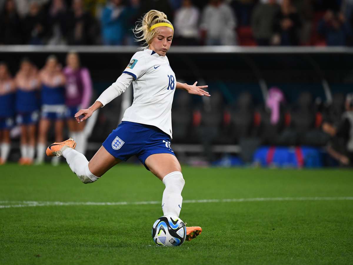 Chloe Kelly, da Inglaterra, bateu pênalti na disputa das quartas de final contra a Nigéria e garantiu classificação à equipe