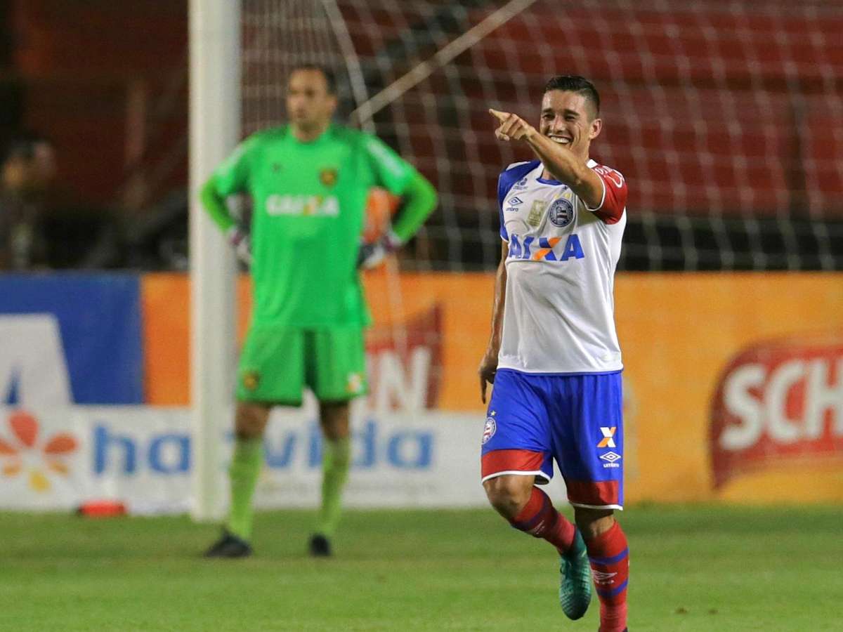 Dessa forma, o Bahia chegou ao ataque com perigo real apenas aos 36 minutos. Mas, quando chegou, quase foi mortal. Allione saiu cara a cara com Magrão, tentou o drible e caiu depois de carrinho do goleiro. O árbitro não assinalou pênalti e também não puniu o atacante por uma eventual simulação. A jogada geral muita reclamação dos jogadores e da comissão técnica do Bahia.