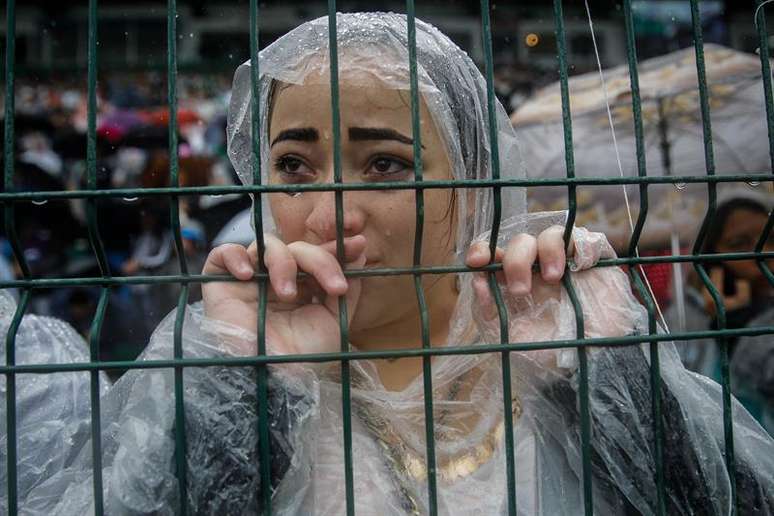 A forte chuva que caiu em Chapecó na manhã não espantou o público que aguardou desde cedo a chegada dos corpos das vítimas do acidente aéreo na Colômbia com o time da Chapecoense. Os corpos chegaram por volta das 12h25 ao estádio, depois de um cortejo que percorreu as ruas da cidade. As arquibancadas ficaram lotadas de torcedores e populares que, emocionados, se abrigam debaixo de capas e guarda-chuvas.
