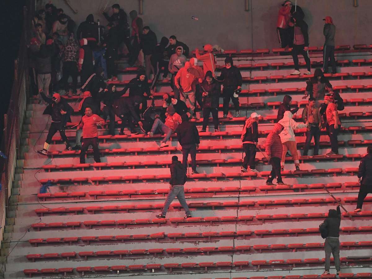 A briga entre torcedores chilenos e argentinos começou no intervalo da partida disputada no Estádio Libertadores da América, do Independiente, quando o placar estava 1 a 1. Atos de vandalismo começaram na torcida visitante e foram revidados pelos donos da casa, que invadiram o setor da La U.