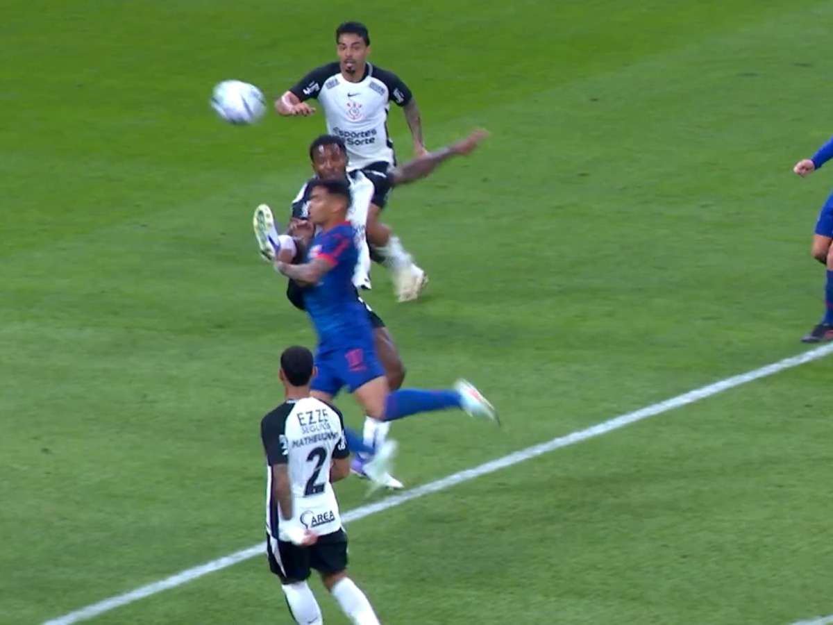 O lance envolvendo o zagueiro Cacá, do Timão, e o atacante Vinicinho, do Red Bull Bragantino, foi validado por grupo de cinco ex-árbitros.