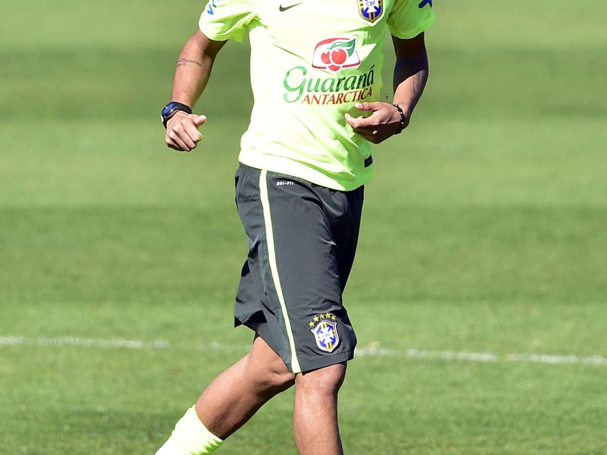 A dois dias do jogo contra a Colômbia, pelas quartas de final da Copa do Mundo de 2014, a Seleção Brasileira realizou treino na Granja Comary. Na foto, Neymar
