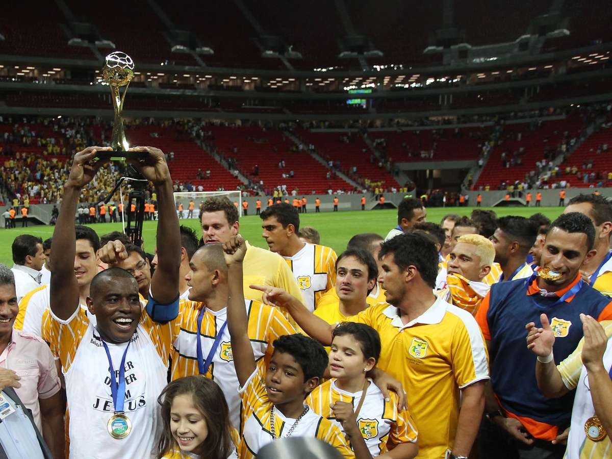 A primeira partida oficial do Estádio Nacional Mané Garrincha, em Brasília, consagrou o Brasiliense como campeão candango da temporada 2013. Depois de vencer o Brasília por 1 a 0 no jogo de ida, o time fez 3 a 0 na tarde deste sábado e garantiu o título. Bocão, Washington e Romarinho - filho do ex-atacante Romário - fizeram os gols do duelo.
