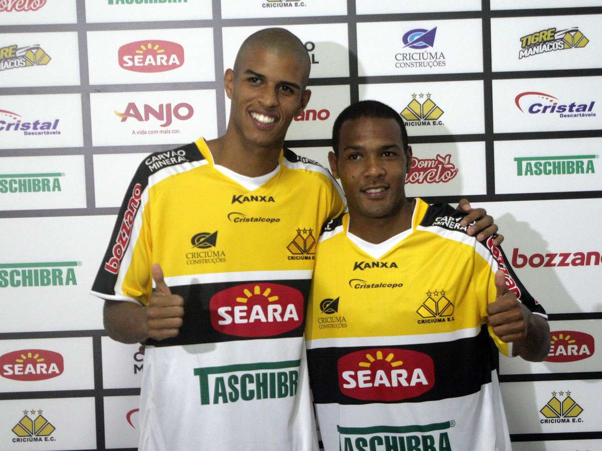 Ewerton Páscoa, 23 anos, chegou ao Criciúma por meio empréstimo junto ao Audax-SP. Destaque do Guarani durante o Campeonato Paulista de 2012, o jogador se uniu ao xará meio-campista Everton Luiz para posar com a camisa tricolor pela primeira vez. O volante de 24 anos também foi contratado por empréstimo do CRB e disse estar motivado para trabalhar novamente com o técnico Paulo Comelli.