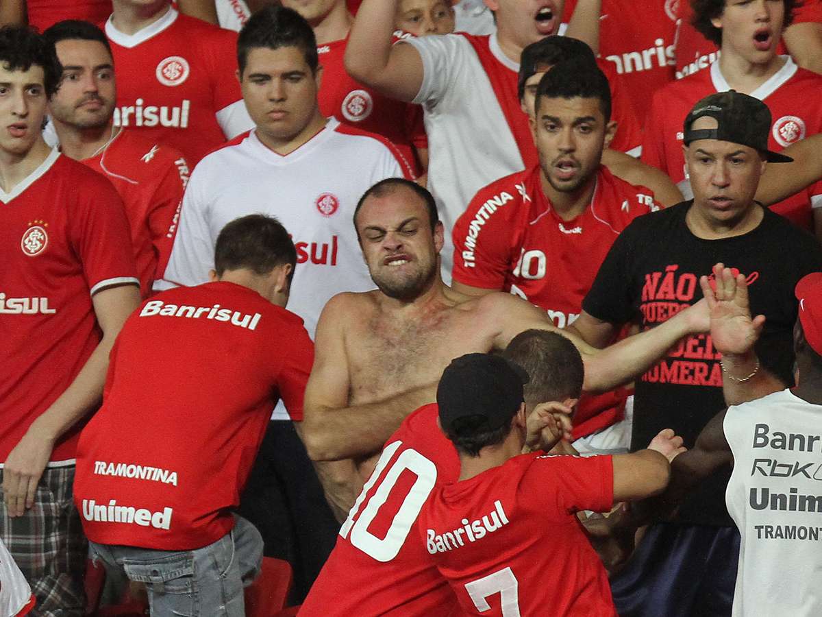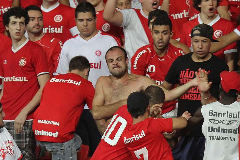 Dois homens acusados de agredirem torcedores durante a partida do Internacional contra o Emelec, pela Copa Libertadores, na noite de quinta-feira, foram impedidos de comparecer a jogos do clube colorado. A proibição se estende até o dia 18 de maio, quando será realizada uma audiência judicial sobre o caso.