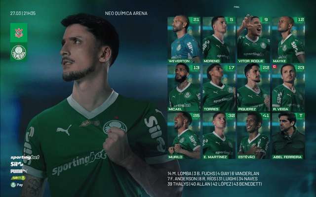 PRIMEIRO TEMPO INTENSO NA NEO QUÍMICA ARENA | Os 45 minutos iniciais da finalíssima do Paulistão viram duelos marcados por divididas e empurrões entre os jogadores de Palmeiras e Corinthians. O Timão deu pouco espaço para o Alviverde finalizar e Hugo Souza pouco trabalho na primeira etapa. A melhor oportunidade veio dos pés de Garro, com um chute que parou na trave de Weverton, aos 27 minutos.