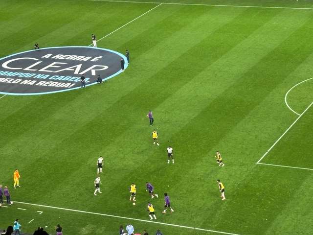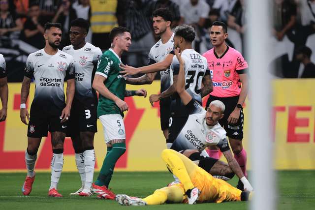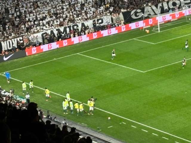 COMEÇO DE JOGO DISPUTADO | Partida pegada na Neo Química Arena e sem muitas chances claras para nenhuma das equipes. A bola é quente no meio de campo, com disputas entre os meio-campistas; o Corinthians aposta em lançamentos ao ataque, enquanto o Verdão se apoia em jogadas de velocidade pelas laterais.