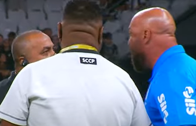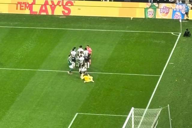 HUGO SOFRE ENTRADA FORTE | O goleiro do Timão levou a pior após arrancada de Vitor Roque no ataque. O Tigrinho dividiu com Félix Torres e ambos os jogadores se chocaram com o goleiro, que caiu no chão e precisou de atendimento. Os jogadores do Corinthians se irritaram com a entrada de Vitor Roque. (Por Raul Godoy)