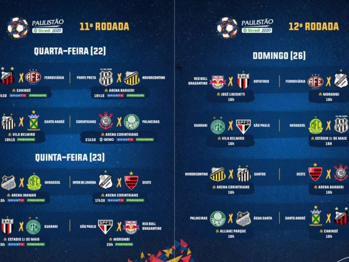 A 11ª rodada do Campeonato Paulista será disputada entre os dias 22 e 23 de julho, enquanto no encerramento da primeira fase todos os jogos serão disputados no dia 26.