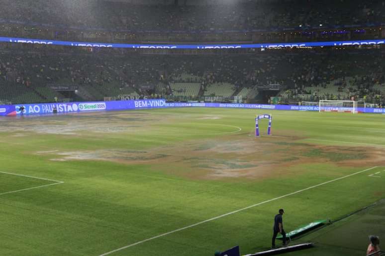 Dérbi pelo Campeonato Paulista teve que ser atrasado por acúmulo de água no gramado do estádio palmeirense