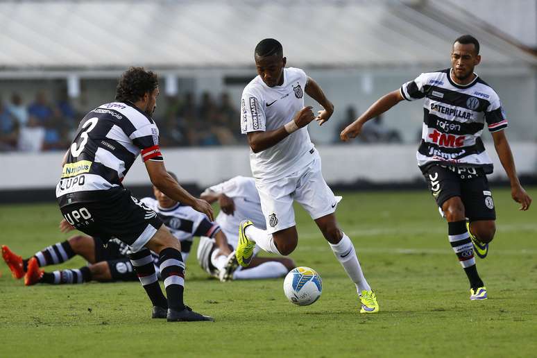 Após sofrer uma discreta pressão inicial, o Santos conseguiu tomar o controle do jogo com jogadas pelo lado direito do campo, onde Victor Ferraz aparecia bem para o apoio. Formando boa dupla pelo setor com o lateral, Geuvânio chamou o jogo e por pouco não inaugurou o placar com um chutaço de um ângulo improvável que acertou o travessão.