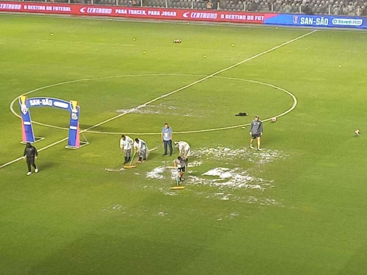 Santos x São Paulo sofre atraso após chuva castigar gramado da Vila Belmiro