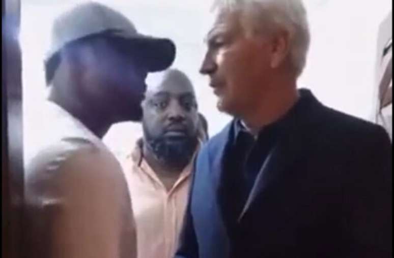 Em seguida, o desentendimento com o técnico começou após o profissional colocar a mão no braço do ex-atleta.