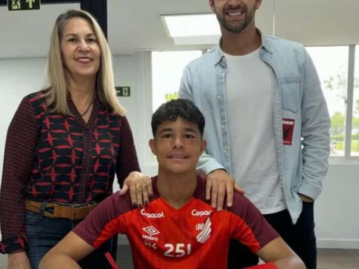 Bruninho Samudio, de 14 anos, assinou contrato como goleiro do Athletico-PR. O anúncio foi feito pelo Furacão na última quinta-feira (22), data em que a mãe do jovem, a ex-modelo Eliza Samudio, completaria 39 anos.
