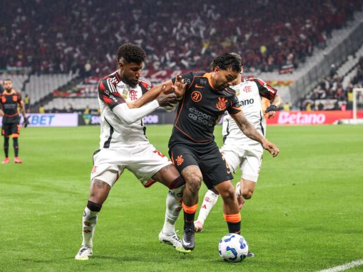 Mas faltou consistência ao Corinthians e o Flamengo, dono do melhor ataque do campeonato, pôs a bola no chão e insistiu até empatar rapidamente com Arrascaeta. Aos nove, o uruguaio vice-artilheiro do Brasileirão não precisou de muito espaço para, de dentro da área, acertar chute de canhota no canto esquerdo de Hugo Souza.
