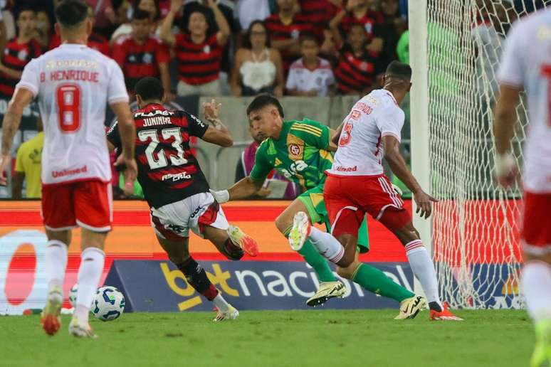 Após sofrer o gol, o Flamengo tentou reagir, aumentando a posse de bola e criando jogadas pelas laterais com Luiz Araújo e Gerson. No entanto, a defesa do Internacional, bem postada, conseguiu segurar a vantagem até o intervalo.