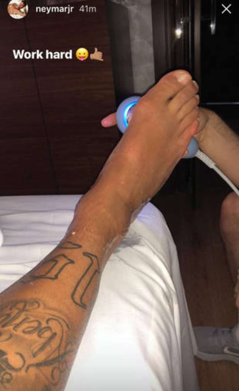 Fora do primeiro treinamento da seleção brasileira após a estreia na Copa do Mundo da Rússia - o empate por 1 a 1 com a Suíça, em Rostov, no último domingo -, Neymar aproveitou a tarde de segunda-feira em Sochi para realizar tratamento contra dores no pé direito. Foi o próprio atacante que revelou a adoção de cuidados especiais com o local, em publicação no seu perfil no Instagram.