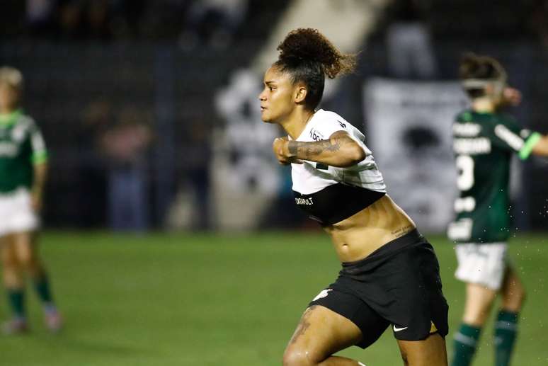 Nesta segunda-feira, o Corinthians derrotou o Palmeiras por 3 a 2 em Derby válido pela sétima rodada do Campeonato Brasileiro feminino. O gol da vitória alvinegra, de virada, saiu após cabeceio da zagueira Tarciane. Após o apito final, a jogadora de 19 anos comemorou o triunfo e o primeiro tento anotado na temporada.