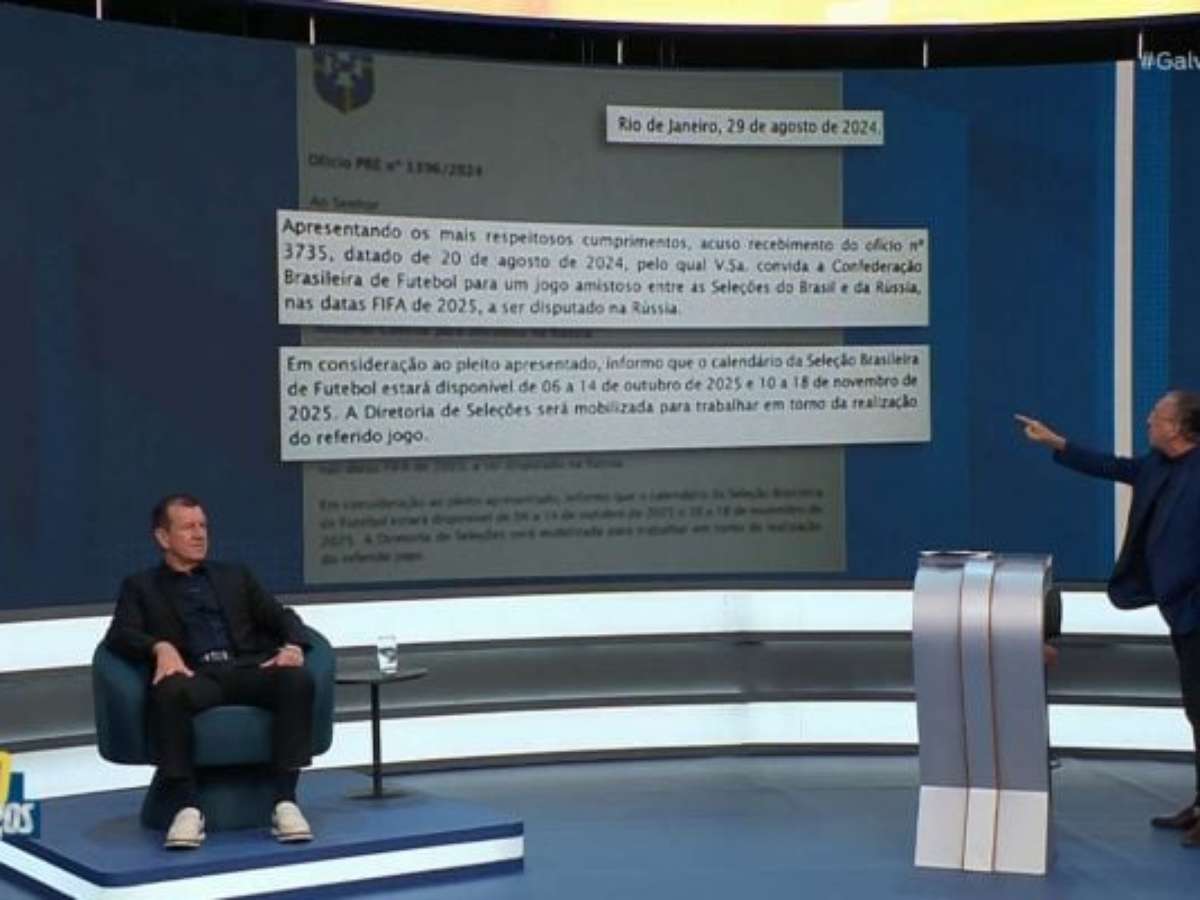 Galvão Bueno revelou no programa "Galvão e Amigos", da última segunda-feira (5), que o presidente da Confederação Brasileira de Futebol (CBF), Ednaldo Rodrigues, chegou a confirmar um amistoso com a Rússia para 2025. No entanto, o país está banido pela Fifa desde fevereiro de 2022.