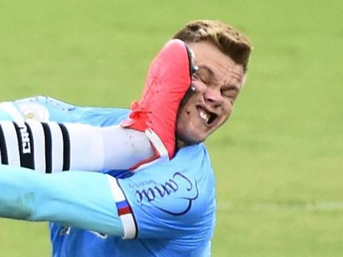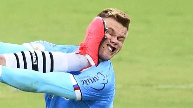 Goleiro do Bahia leva cinco pontos no rosto após solada