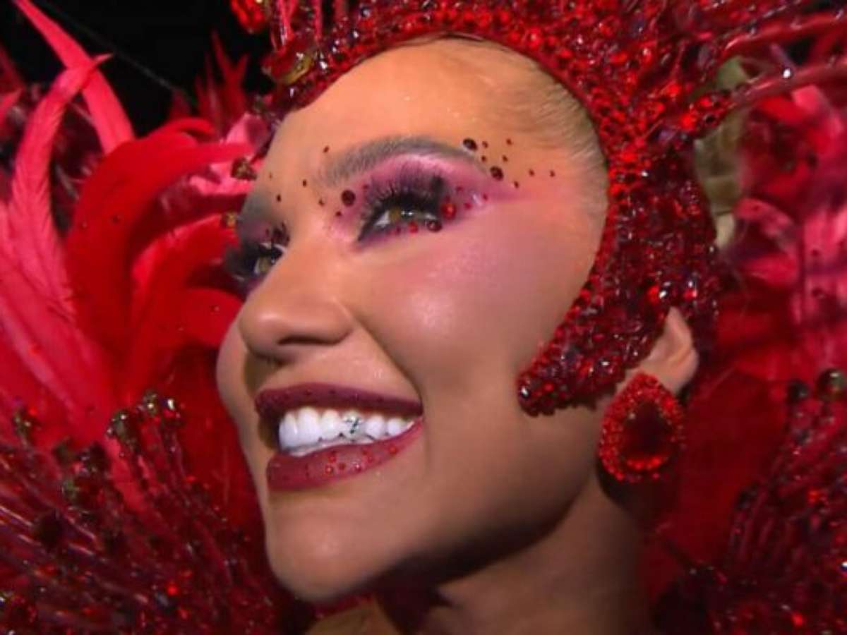 Rainha da bateria da Grande Rio aposta em fantasia sensual e usa pedrinhas em local inusitado para lembrar Vini Jr