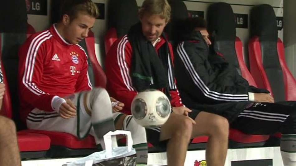 Alemanha Mario Gotze mostra habilidade e faz embaixadinha no banco Exibir comentários Compartilhar Craque do Bayern de Munique deu show de embaixadinhas no banco de reservas, durante o jogo contra o Bayer Leverkusen Terra Publicidade