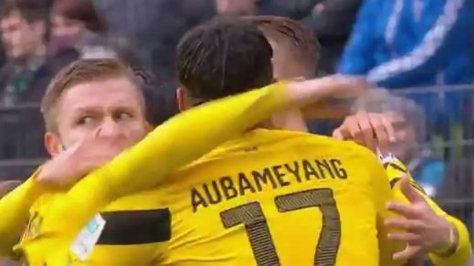 Aubameyang (2) e Kagawa marcaram os gols do Borussia Dortmund, enquanto Stindl fez os dois do time da casa; com o resultado, o time do Borussia ainda sonha em chegar à zona de classificação das ligas europeias - narração: Fabio Salomão / comentários: Wagner Giannella