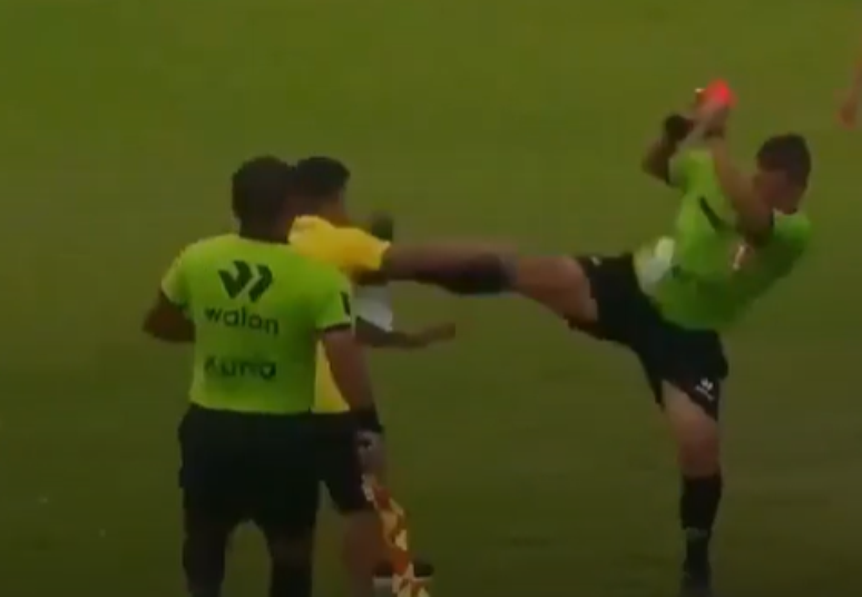 Árbitro chuta membro de comissão técnica para escapar de agressão e partida é suspensa