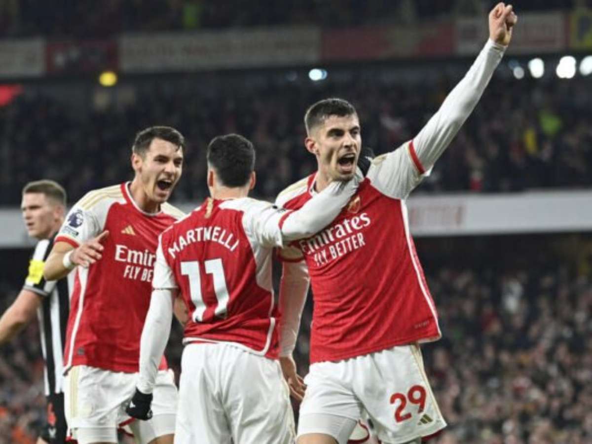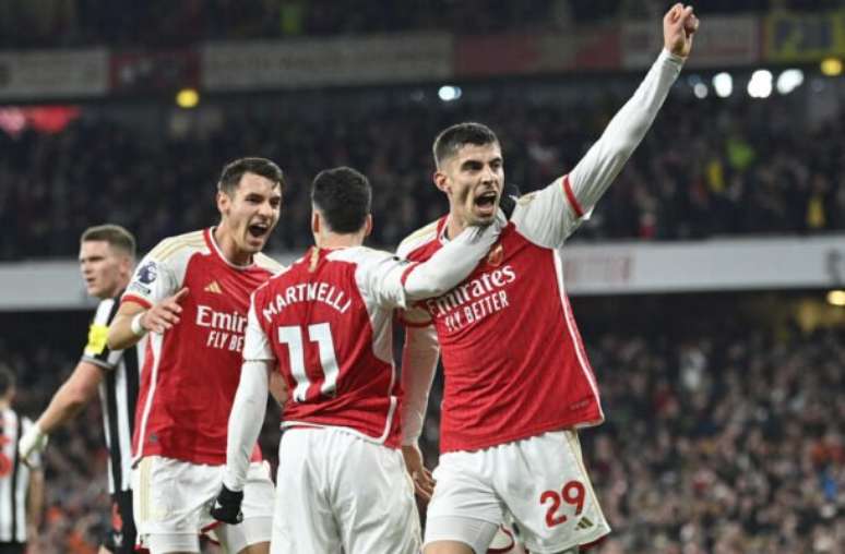 A briga pela liderança da Premier League está acirrada. Em boa atuação no Emirates Stadium, em Londres, o Arsenal goleou o Newcastle por 4 a 0 e segue na briga pelo título do Campeonato Inglês. Botman, contra, Havertz, Saka e Kiwior anotaram os gols da vitória dos Gunners nesta 26ª rodada da competição. Pelo lado dos visitantes, Willock anotou o gol de honra na reta final da partida neste domingo (24).