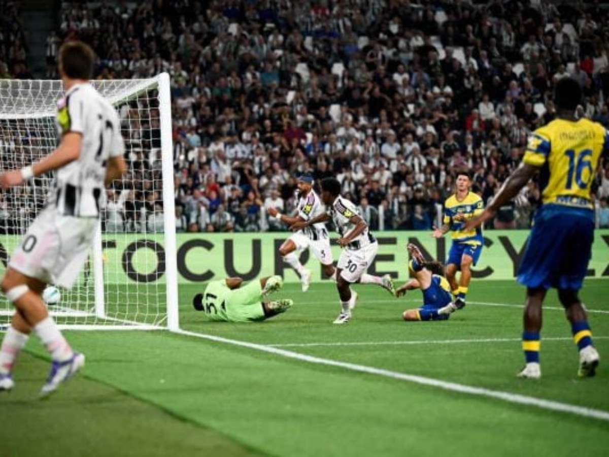 A Juventus foi o time que mais pressionou no primeiro tempo, rondando a área do Parma. Quase marcou aos sete minutos, quando Thuram encontrou Francisco Conceição bem posicionado. O português cabeceou com perigo, mas o goleiro Szuki fez boa defesa. Apesar do placar não sair do 0 a 0 nos primeiros 45 minutos, os números refletiam o domínio da equipe da casa: 75% de posse de bola e 7 a 1 nas finalizações.