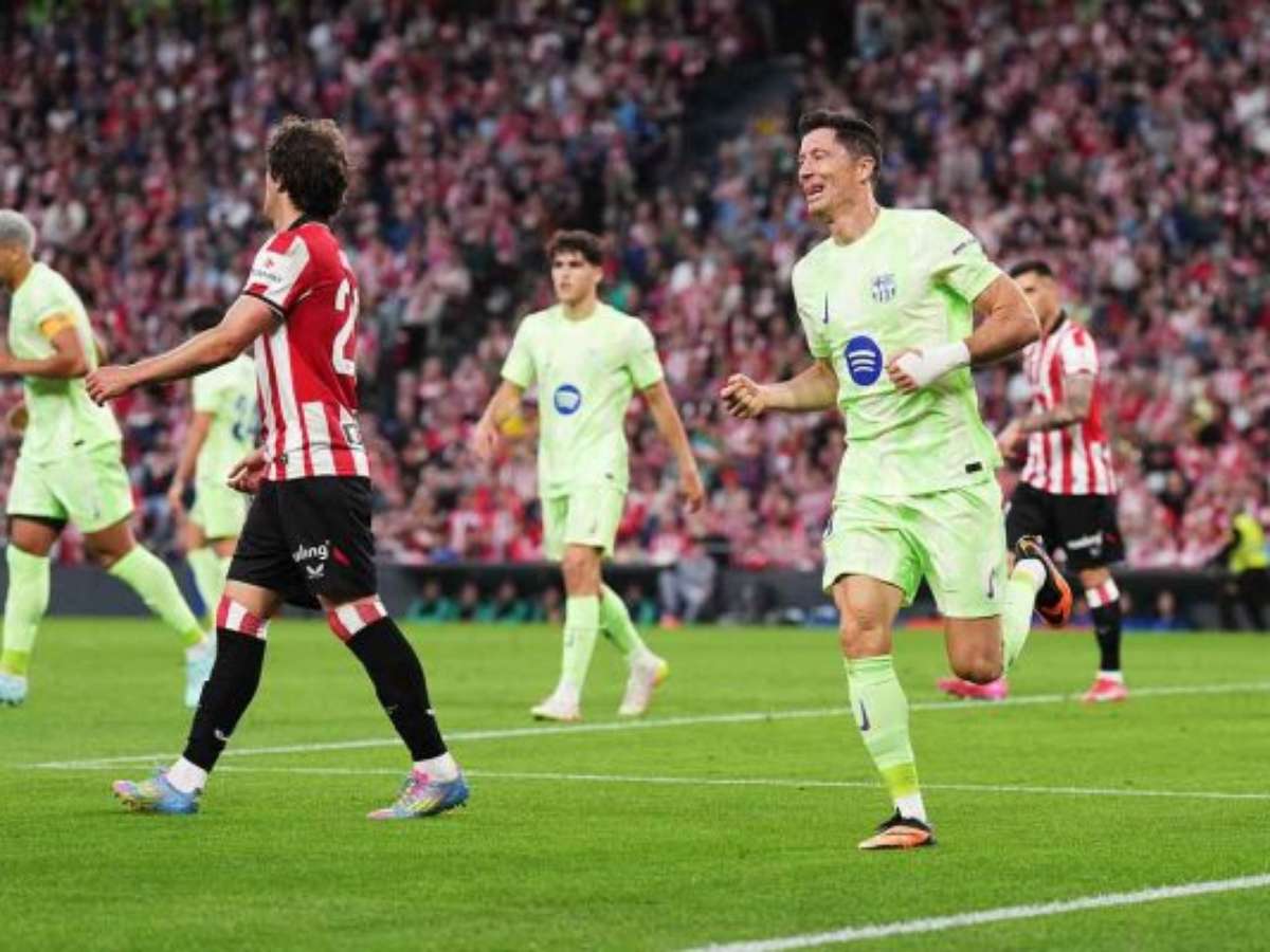 Campeão espanhol antecipado (e também da Copa do Rei e da Supercopa da Espanha), o Barcelona encerrou a temporada 2024/2025 visitando e vencendo o Athetic Bilbao por 3 a 0, neste domingo (25). O centroavante Lewandowski fez dois gols no primeiro tempo, e Dani Olmo deu números finais nos acréscimos da etapa complementar.