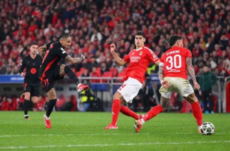 Barcelona supera expulsão, vence Benfica com gol de Raphinha e abre vantagem na Champions