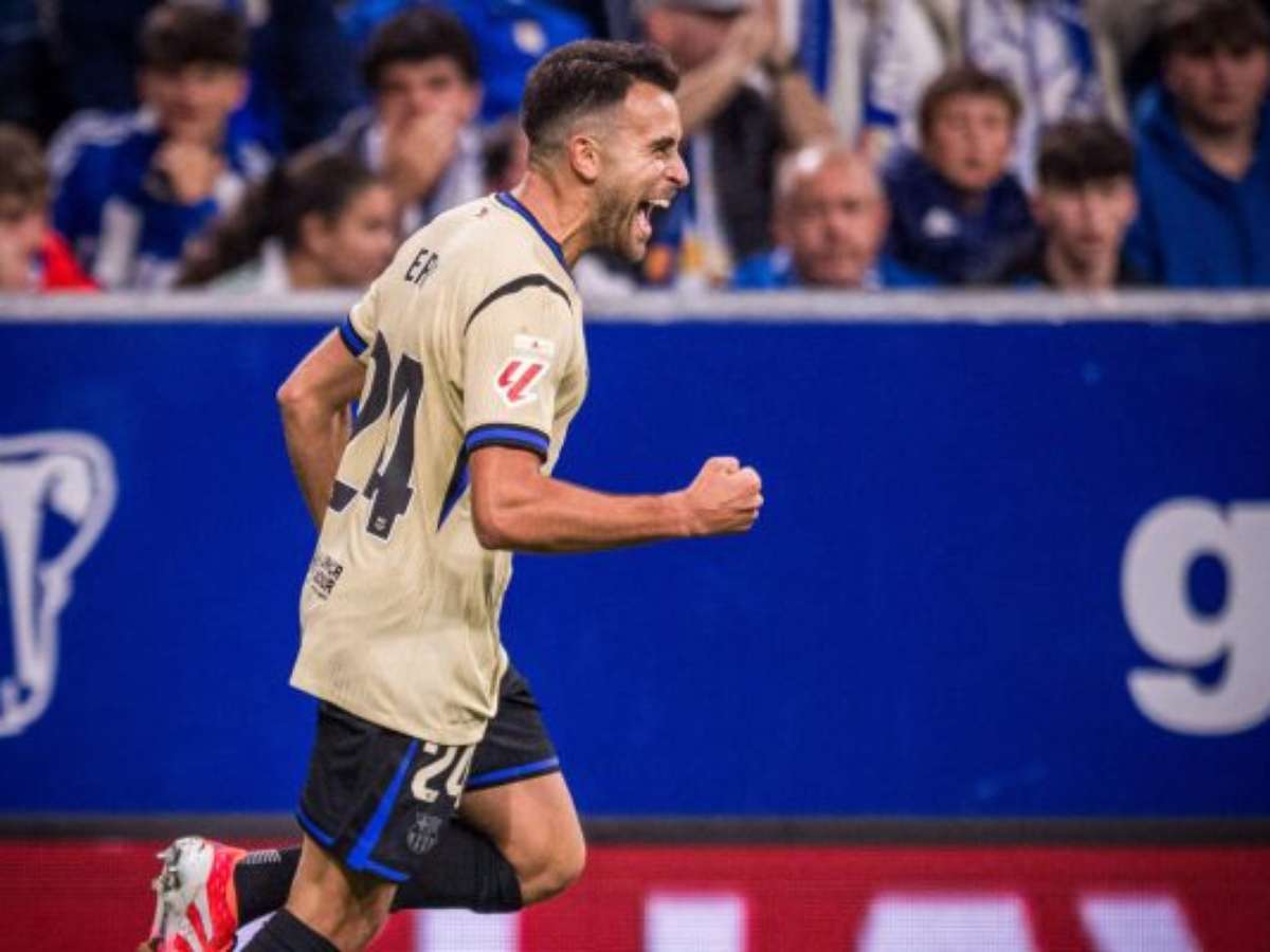 Desde o início, o Barcelona parecia que dominaria a partida. Os visitantes criaram chances com Dani Olmo, Rashford, Raphinha e Ronald Araújo, mas pararam em boa atuação do goleiro Escandell. Porém, uma falha na saída de bola de Joan García definiu o resultado na primeira etapa. Após lançamento do campo de defesa do Oviedo, o goleiro do Barça saiu do gol, chegou a matar a bola, mas saiu jogando errado. Reina chutou de primeira, quase do meio de campo, e fez um golaço para confirmar a vantagem antes do intervalo.
