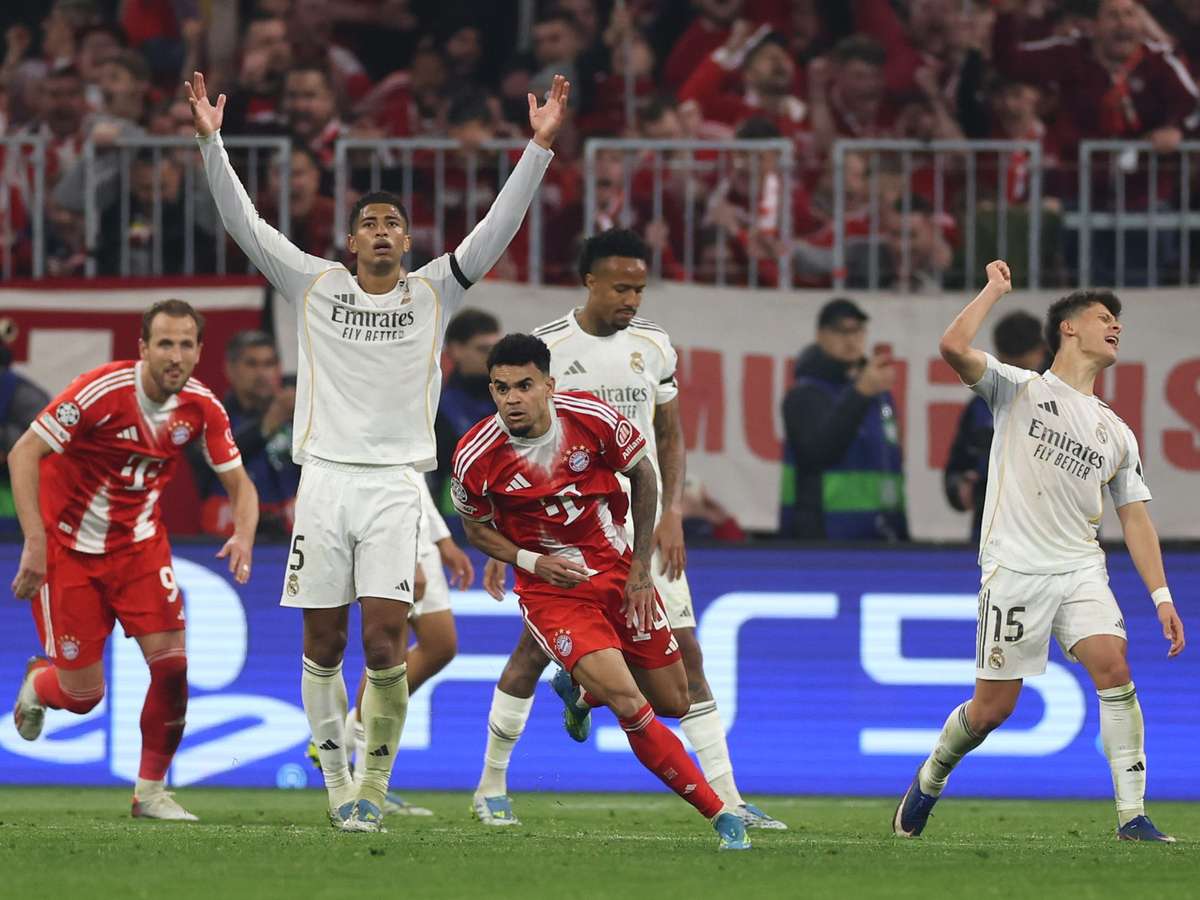 O Real Madrid se defendia bem, mas tomou um duro golpe com a expulsão de Camavinga após falta em Harry Kane. Com um jogador a mais em campo, o Bayern de Munique aproveitou a vantagem numérica e voltou à frente do agregado. Aos 43', Luis Díaz tabelou com Musiala e soltou a bomba; a bola desviou em Militão e foi parar no fundo das redes.