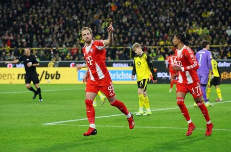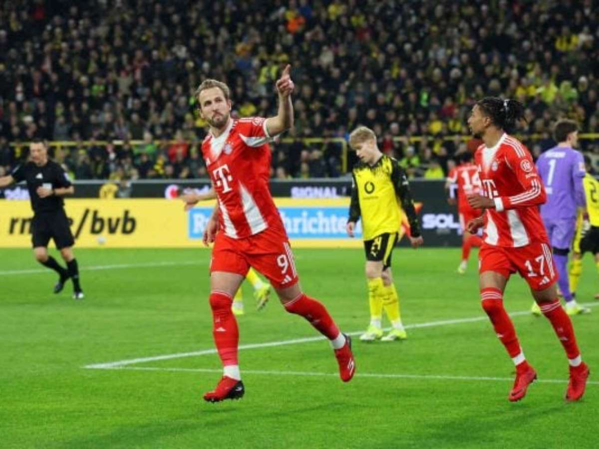 O Bayern de Munique tem Harry Kane em estado de graça e está a um passo do título alemão. Neste sábado, 28/2, em jogo pela 24ª rodada da competição, foi até o Signal Iduna Park, QG do arquirrival Borussia Dortmund, e venceu de virada por 3 a 2, em um final sensacional. O time da casa, com sua torcida lotando o estádio e fazendo grande festa, saiu na frente com o zagueiro Schlotterbeck. No segundo tempo, porém, o Bayern virou com dois gols de Kane, que chegou aos 30 e segue isolado na ponta da artilharia. O Dortmund ainda conseguiu o empate aos 37 minutos, com Svensson, reacendendo a esperança da torcida. Mas o Bayern é o Bayern: pouco depois, Kimmich acertou um golaço e recolocou os bávaros na frente, garantindo a vitória em um clássico eletrizante.